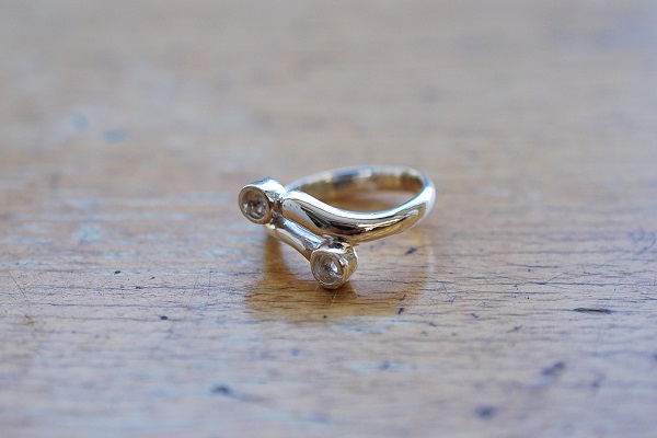 ご自分で着けられるようにデザインを考えて、石も2石セットできるようにワックス原型を頑張って作られていました。