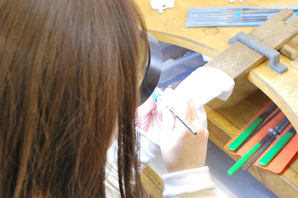繊細なデザインなのでワックスが割れてしまわないように慎重に作業されています。