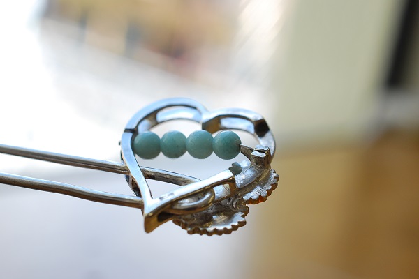 裏側にブローチ金具を取り付けてビーズを付け替えることが出来るようにしています。