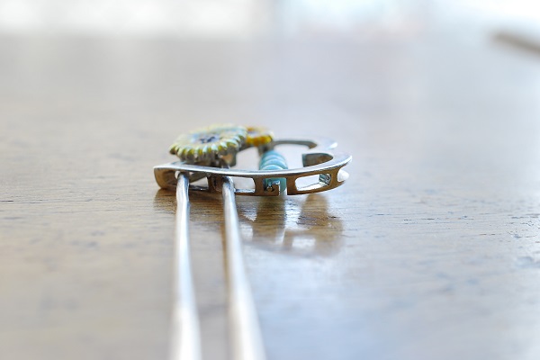 真ん中にビーズを通すための芯を通して付け替えることが出来るようになっています。