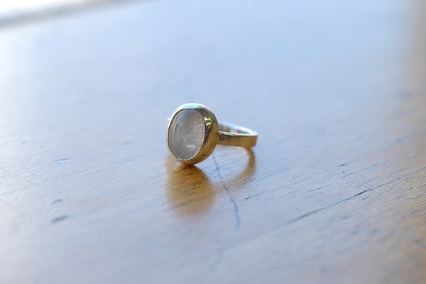 授業ではムーンストーンを使ったシンプルなピンキーリングを完成された生徒さんをご紹介します。