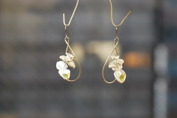 葉っぱ部分にセットされたペリドットも扇型の変形カットだったので、石を留めるのも一苦労でした。