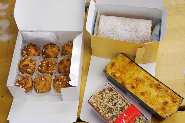 成城石井のプレミアムチーズケーキと白トリュフ香るガトーショコラ、モンシェールのシュークリームとみかげ山手ロールです。