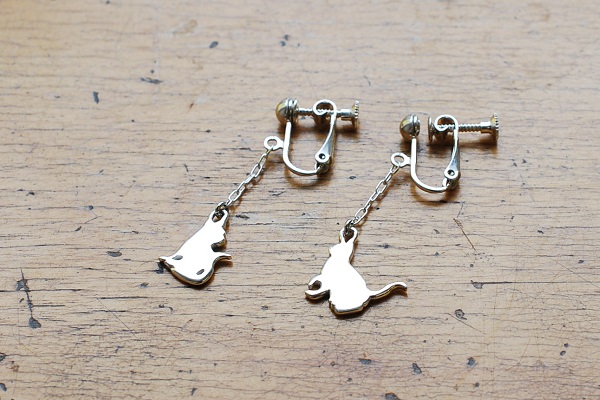 左右で違うポーズの可愛らしい猫のイアリングになりました。
