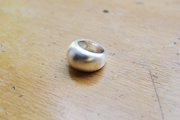 今日はワックスで1番最初に作っていただいている月形甲丸リングのフォルムを気に入って、実際にシルバーで鋳造された生徒さんをご紹介します。