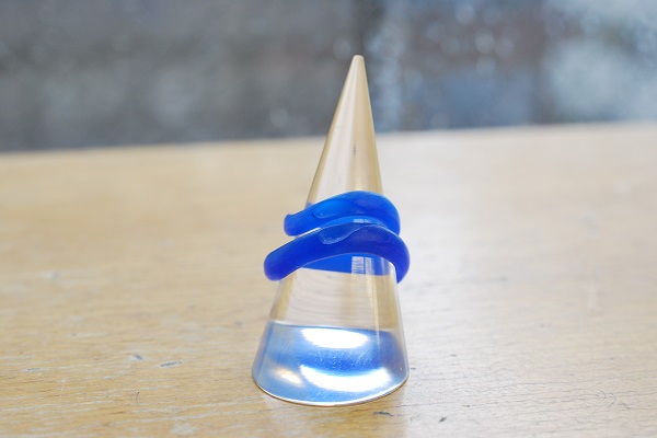 今日は以前、体験講座でペアリングをワックスで製作されたカップルの方が完成したペアリングを取りに来られました。