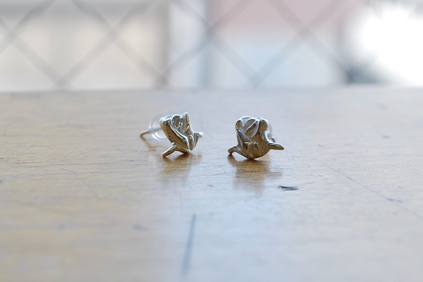 シンプルなデザインですがバラらしいフォルムにこだわって製作されたので、小さいサイズでも一目でバラとわかるピアスになったと思います。