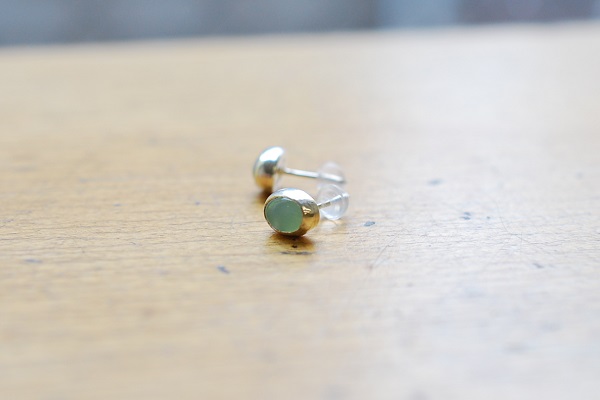 爽やかなグリーンのクリソプレーズをあしらったシンプルなピアスになりました。