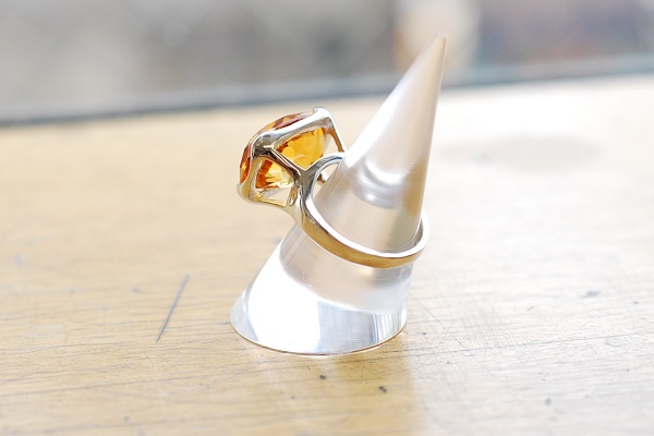 お持ちのシトリンを活かしたデザインのリングを作りたいというご希望でしたので、シンプルながら存在感のあるデザインをご提案しました。