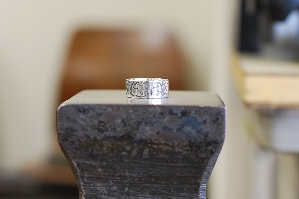 2018.12.04 本日の教室の様子 本日の教室の様子です。彫金教室muro工房では1日体験講座を実施中です。下の画像のリングは様々なカーブの刻印をスタンプして唐草模様を表現したリングです。1日体験講座で製作していただけます。お気軽にご参加ください。