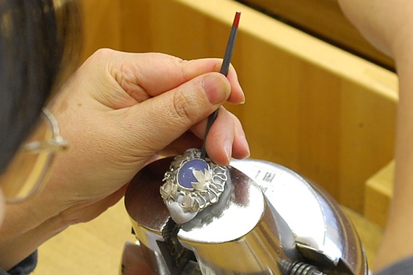 ペンダントトップの石留をされています。