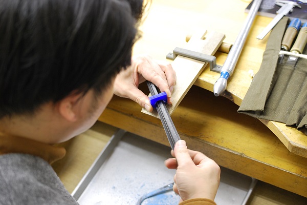 今日はダイヤモンドをセットするためのエンゲージリングをワックスで製作されています。