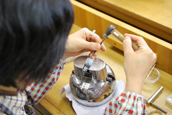 今日はセットリングの石留をされている生徒さんの紹介です。