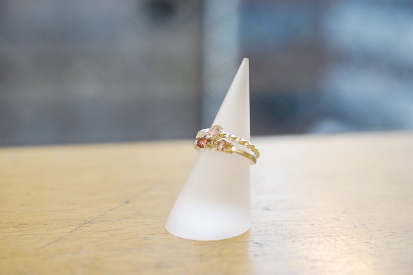 同系色の石をセットしているので統一感のあるセットリングになりました。