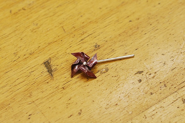 かざぐるまが回るようにカシメているところです。