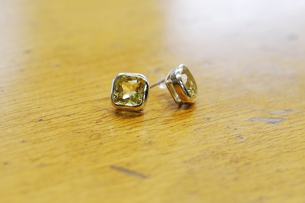 今日は以前ブログでご紹介させていただいた生徒さんのレモンクオーツを使ったピアスが完成しました。
