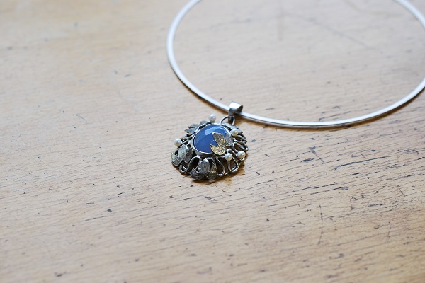 更に本日は以前石留をしているところをご紹介した生徒さんが、カルセドニーのペンダントを完成されたのでご紹介します。