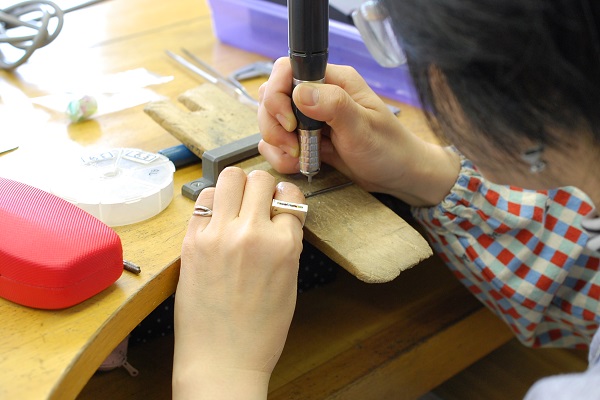 今日はガラスを使ったジュエリーの新作を作るためにシルバーのパーツを試作している生徒さんの紹介です。