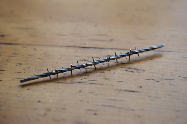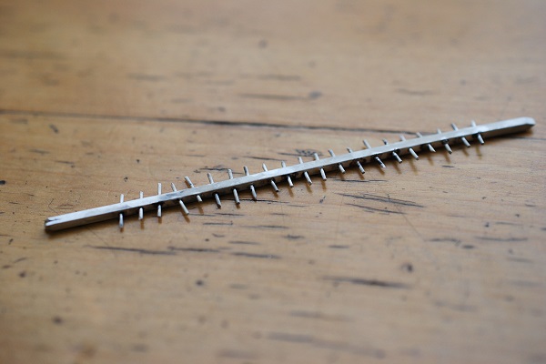 その穴に丸線を通して適当な長さにカットしていき、ロー付けしていきます。
