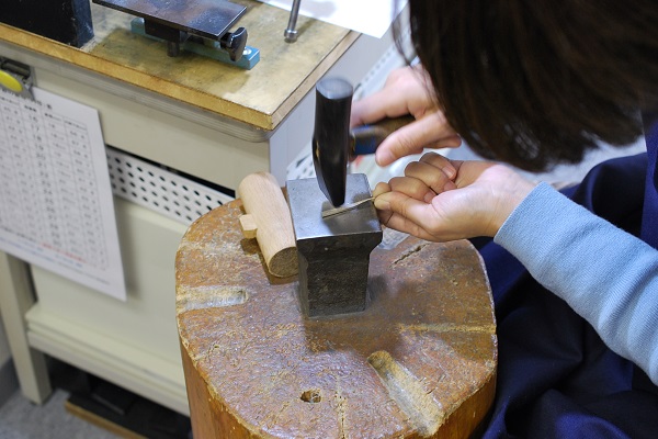 地金を削らずに叩いて成形することで、地金の無駄をなくすことが出来ます。