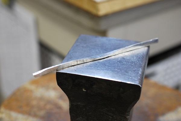幅が細くて厚みのある部分は丸めるのが大変なので、こまめになまして地金を柔らかくしながら曲げていきましょう。
