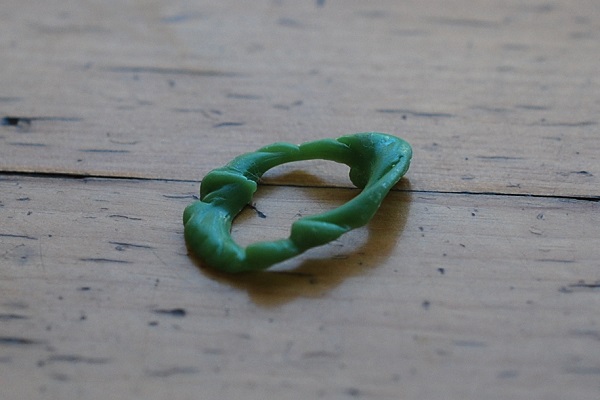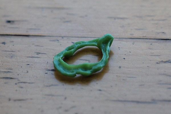 チェーンの金具がぎりぎり通るように空間を作ってスパチュラで形を整えます。