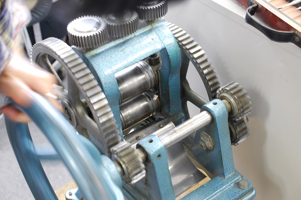 柔らかくしたシルバーをローラーで伸ばしていきます。