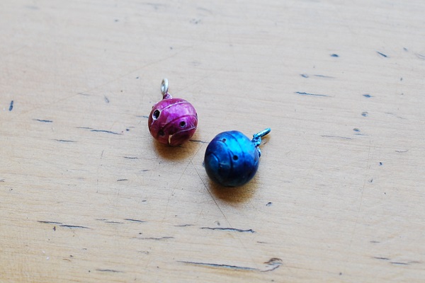 紫の水風船のチャームは一部削れました。青のチャームはまだ色を塗った状態です。