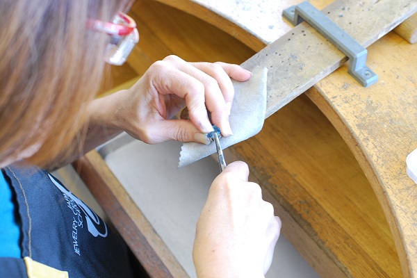 今日は先週ご紹介したブルートパーズの髪留めを製作されている生徒さんが、遂に石留作業をされたのでご紹介します。