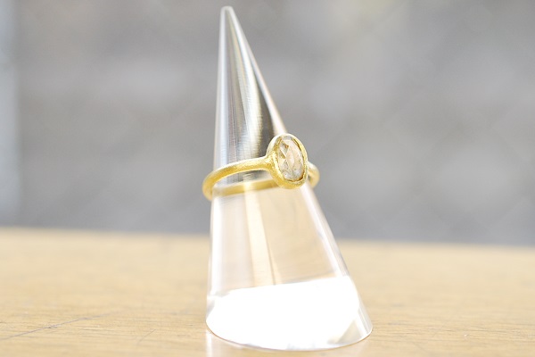 今日はスライス加工されたトルマリンを使って、シンプルなデザインの真鍮リングを完成された生徒さんをご紹介します。