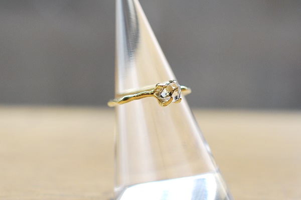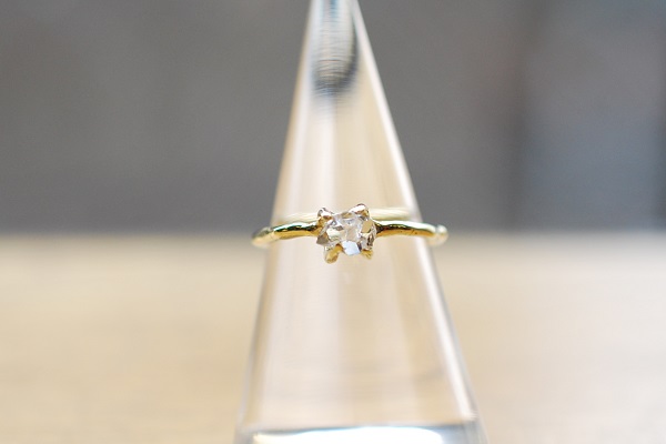 結晶体のままのハーキマーダイヤモンドをセットされているので、石のすわりを良くするのに苦労されていましたが、きれいにセット出来ていると思います。