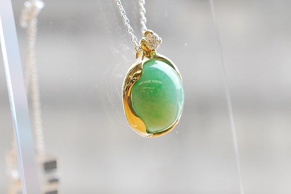 ご両親から受け継いだ翡翠を娘さんのために、着けやすいデザインのペンダントに加工されました。
