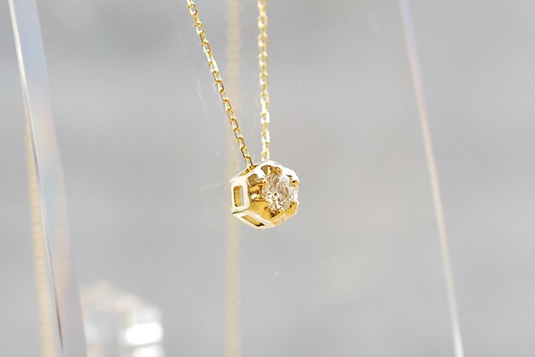 k18イエローゴールドで鋳造されたペンダントを、ダイヤモンドを留めやすくするように加工されていました。