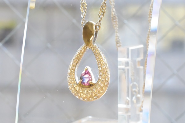 今日ご紹介するのはカラーチェンジサファイアとダイヤモンドを、ふんだんに敷き詰めた非常にゴージャスなペンダントトップを完成された生徒さんです。