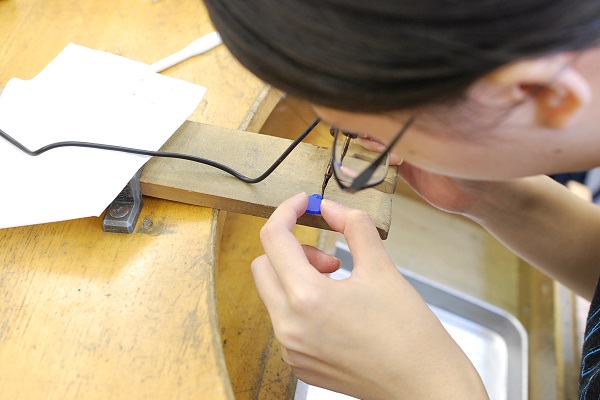 今日は羊のモチーフのピアスをワックスを加工して作られている生徒さんの紹介です。