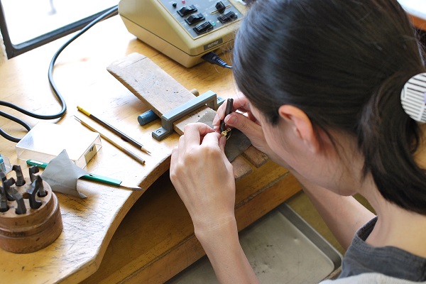 K18のリングなので石目の刻印を手押しで打つのも、硬くて大変です。