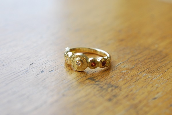 仕上げも光らせる部分と、艶消しにする部分を効果的に織り交ぜてハンドメイドならではの凝ったリングになりました。