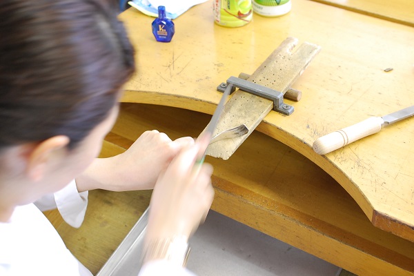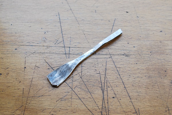 今日は最近忙しくてなかなか教室に来れてなかった生徒さんが、シルバーのアイスクリームスプーンを仕上げるための作業をしに来られました。