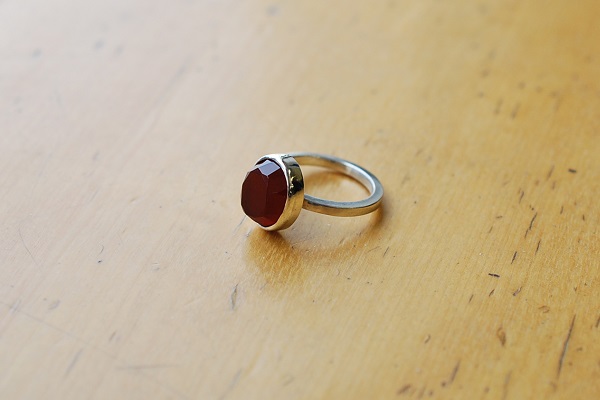 午後からの授業ではカーネリアンと思われる石を使って、シルバーの板からシンプルなデザインのリングを製作されている生徒さんが来られました。