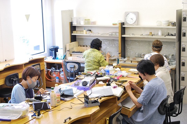 木曜日の生徒さんはマイペースに課題に取り組みながら、好みの石を使ってご自分の欲しいジュエリーへと仕上げられています。